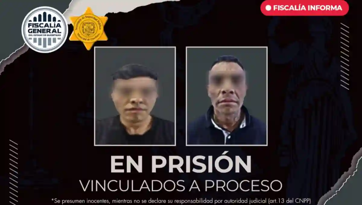 La Fiscalía de Querétaro obtuvo la vinculación a proceso de dos hombres por su probable intervención en el delito de robo a comercio, derivado de hechos ocurridos el pasado 14 de octubre de 2025, en un comercio ubicado en la colonia El Carmen, Querétaro.