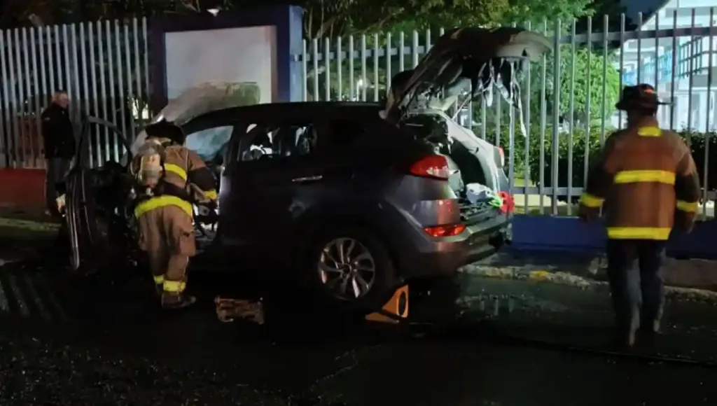 Tras una explosión, se registró el incendio de una camioneta tipo SUV, afortunadamente no hubo personas lesionadas, esto en la calle Manuel Gómez Morín a un costado de la Universidad Autónoma de Querétaro campus San Juan del Río
