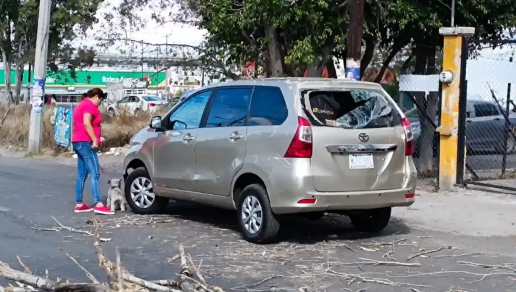 Fuerte susto se llevó un conductor que circulaba por Av. Mercedes Camacho, cuando un árbol cayó y golpeó la parte trasera de su vehículo, esto en el municipio de San Juan del Río.