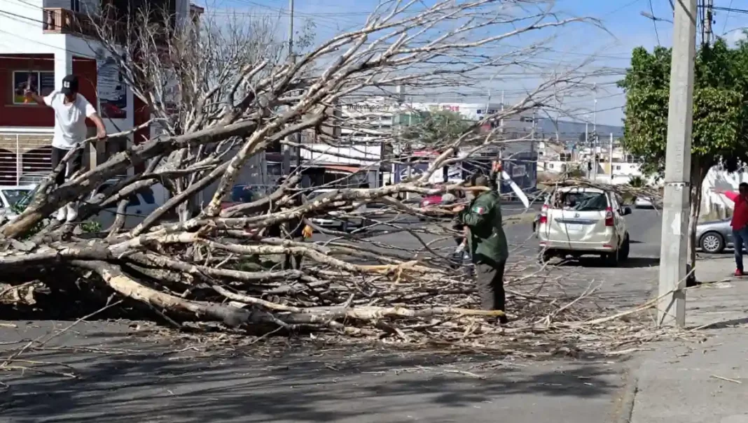 Afortunadamente no hubo personas lesionadas, por lo que el árbol quedó sobre la vialidad afectando el paso vehicular.