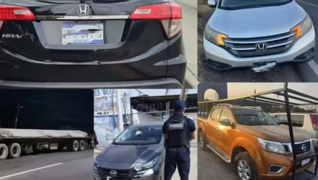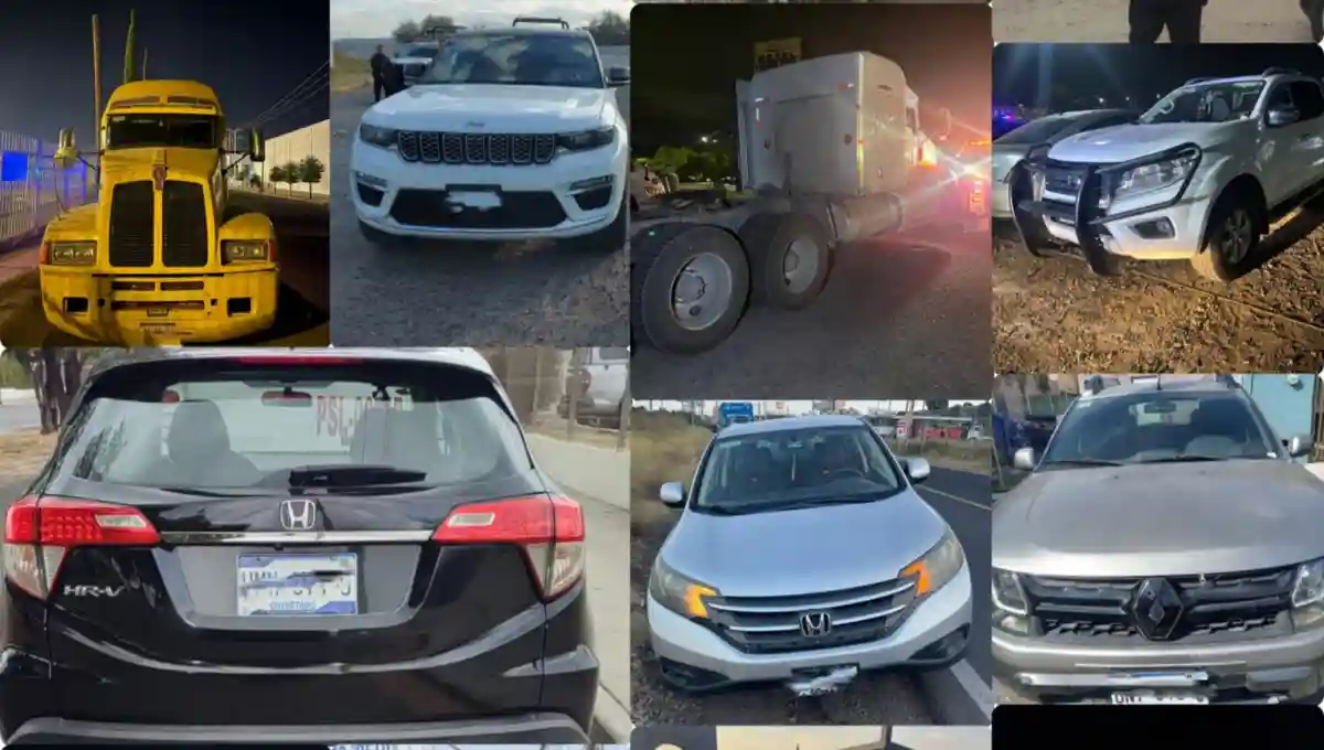 Las unidades (tractocamiones, plataformas, camionetas y un automóvil) fueron detectados en intervenciones focalizadas. Tras consultar su información en el Sistema Plataforma México y confirmar el ilícito, se procedió a su aseguramiento.