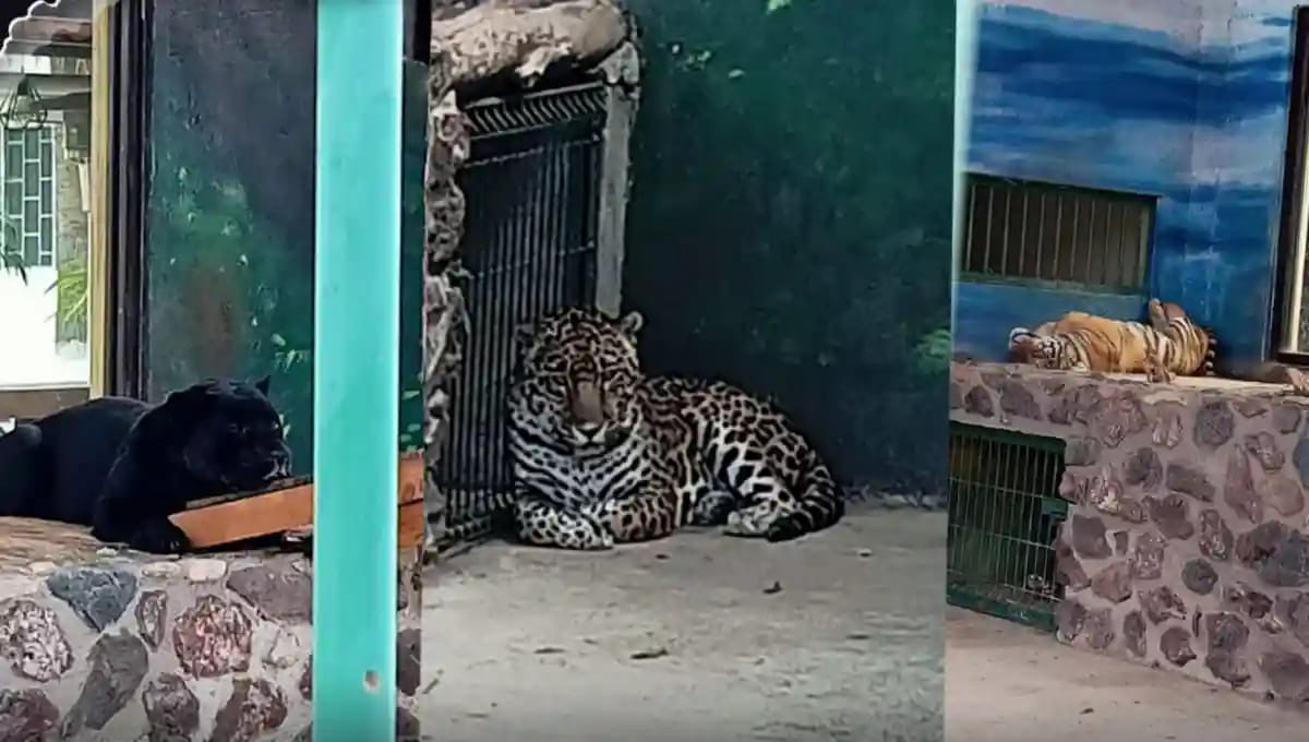 Al interior del inmueble se localizó y aseguró fauna, como fue dos tigres, un jaguar, caballos, caninos, pavorreales, mapaches, guacamayas, entre otros animales.
