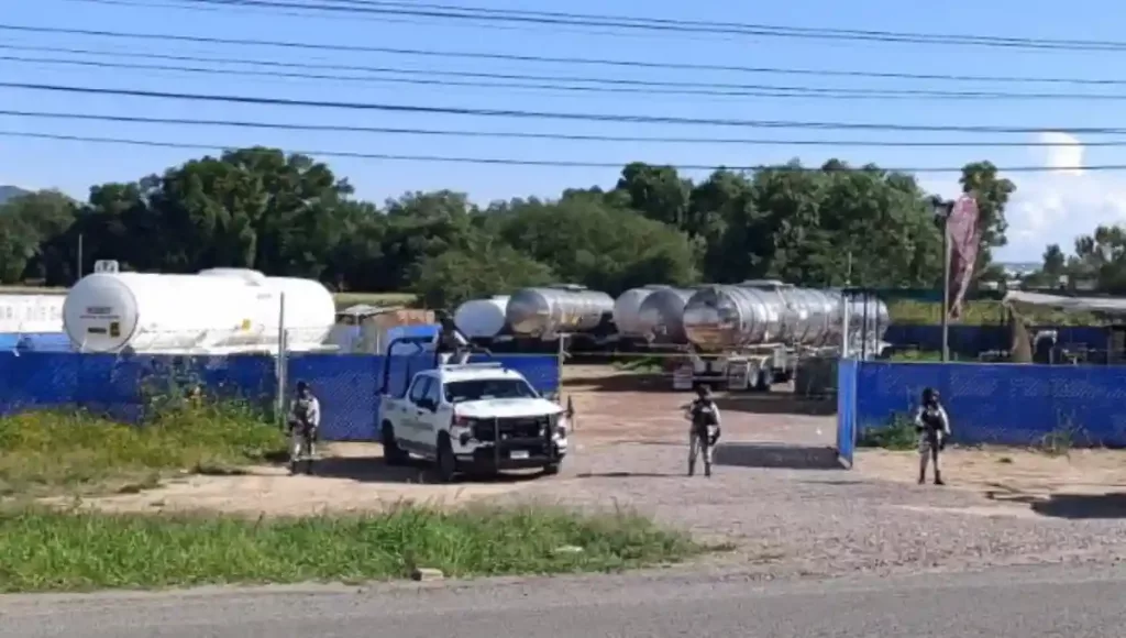 En dichas instalaciones ubicadas en el acceso a la comunidad de San Pedro Ahuacatlán se localizaron en el interior del mismo, por lo menos ocho pipas, algunas de ellas con reporte de robo vigente.