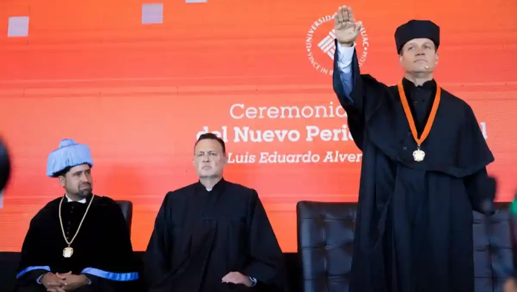 Querétaro va bien y va en el camino correcto, afirmó el gobernador, Mauricio Kuri González, al participar como testigo de honor en la toma de protesta de Luis Eduardo Alverde Montemayor, como rector de la Universidad Anáhuac, para el periodo 2025 al 2028.