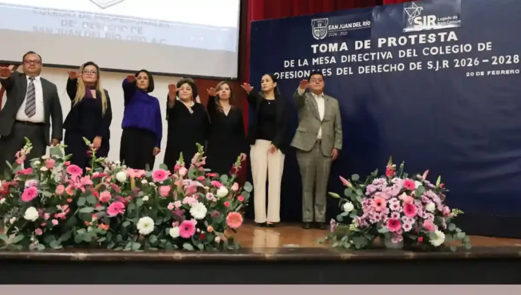 Debido a su compromiso, entrega, profesionalismo y ética, las y los abogados de San Juan del Río son reconocidos por la sociedad, afirmaron el secretario de Gobierno estatal, Eric Gudiño Torres y, en representación del presidente municipal de San Juan del Río, Roberto Cabrera Valencia, la secretaria de Desarrollo Social, Ana Eugenia Patiño Correa, durante la toma de protesta de la Mesa Directiva del Colegio de Profesionales del Derecho de San Juan del Río para el periodo 2026-2028.
