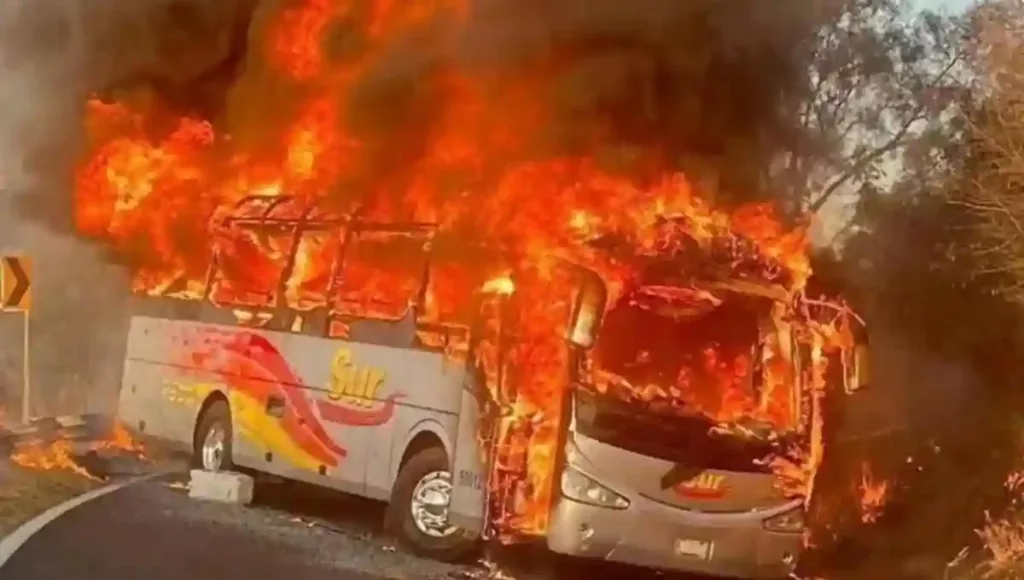 Las carreteras se han convertido en campos de batalla improvisados: vehículos particulares, tráileres y autobuses han sido incendiados, atravesados como barricadas de fuego para frenar el avance de las fuerzas federales.
