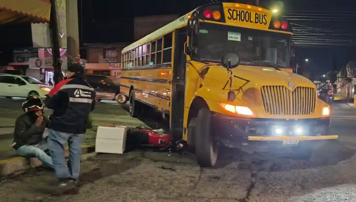 Ante la falta de precaución entre chóferes, un transporte escolar atropello a un motociclista en la esquina de Río Moctezuma y Río Lerma, en el municipio de San Juan del Río.