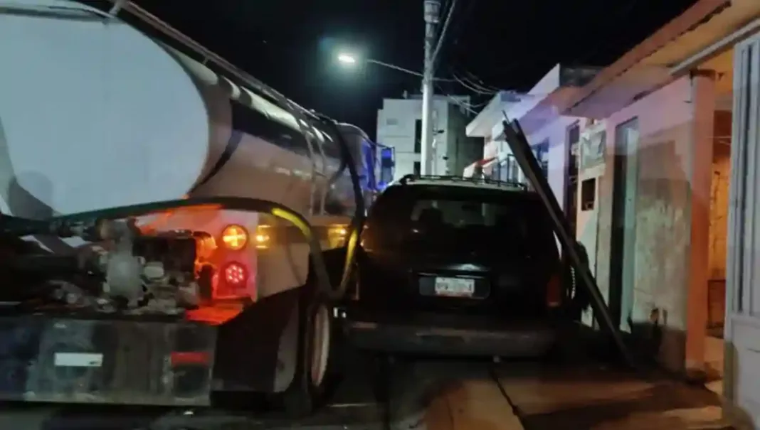 Conductor de pipa supuestamente alcoholizado causa destrozos