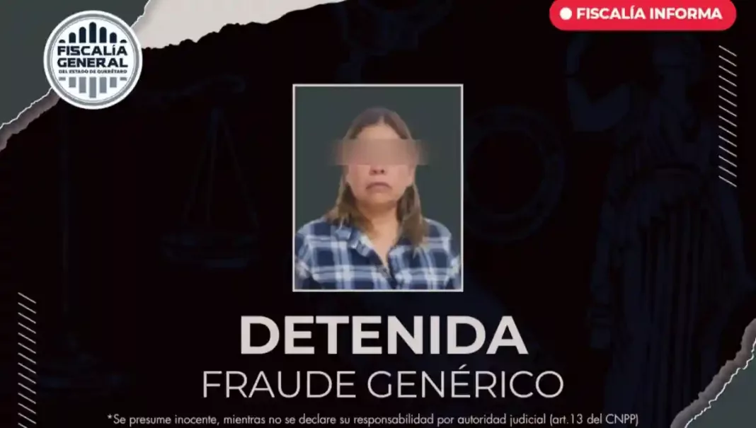 La Fiscalía General de Querétaro informa que se cumplimento una orden de aprehensión en contra de una mujer, por su probable intervención en el delito de fraude genérico, derivado de hechos ocurridos en la comunidad de Tilaco, municipio de Landa de Matamoros.