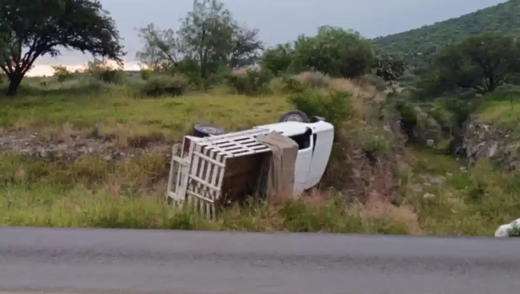 Una de las volcaduras se registró antes de llegar al puente ferroviario a la entrada de Vista Hermosa, dónde se acuerdo a la información proporcionada, se trato de una falla mecánica lo que hizo que el chófer perdiera el control de su unidad, una camioneta tipo Nissan, quedando fuera del camino.
