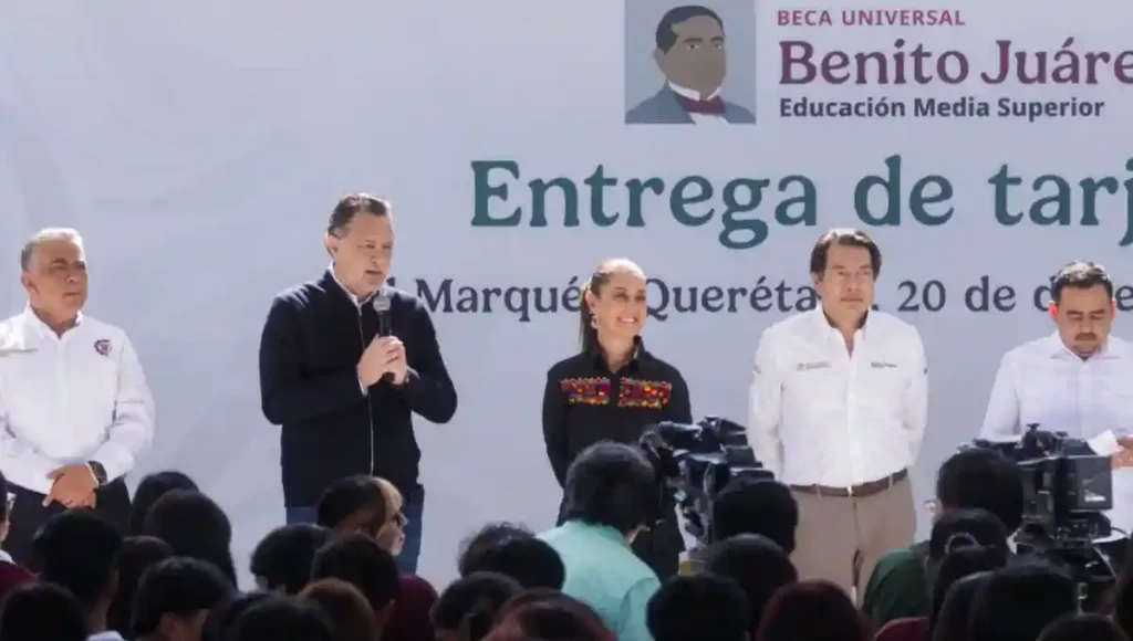 PortadaEncabezan Claudia Sheinbaum y Mauricio Kuri entrega de Becas Benito Juárez