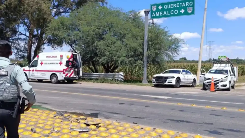 Fuerte choque entre dos unidades se registró en la carretera 120 Galindo – Amealco, a la altura del kilómetro 1 en el cruce de entrada a la comunidad de Senegal de las Palomas, en el municipio de San Juan del Río.