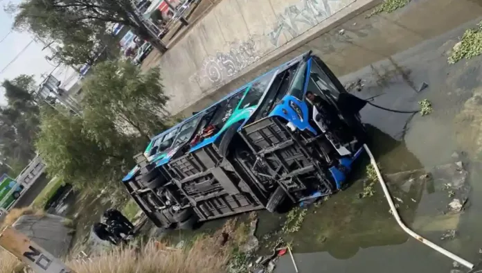 El accidente, se registró cuando la unidad de transporte público, cayó dentro de un canal de aguas pluviales en Avenida Revolución, hasta el momento se desconoce cuál fue la causa del trágico hecho.