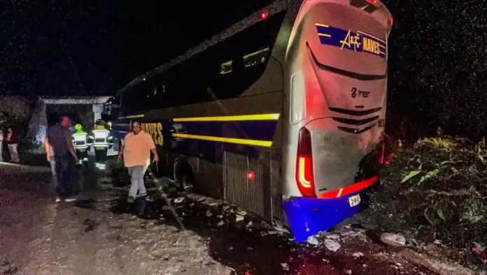 Se registró un accidente en la carretera 122 La LLave – La Estancia, a la altura del kilómetro uno, en el municipio de San Juan del Río, dónde un autobús aparentemente perdió el control y se impacta.