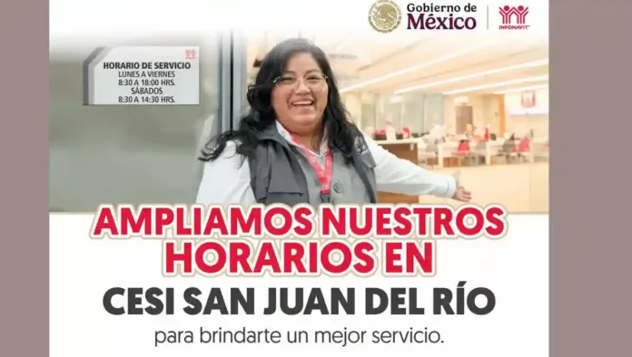 A partir del 03 de marzo, las instalaciones del Centro de Servicio INFONAVIT (Cesi) en San Juan Del Río, ubicado en Boulevard Miguel Hidalgo #229, interior L-4, colonia centro, estarán abiertas de lunes a viernes de 08:30 a 18:00 horas y sábados de 08:30 a 14:30 horas.