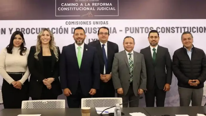 En ese sentido, advirtió que Querétaro no va tarde al proceso de reforma constitucional en materia judicial, porque en el Congreso va en tiempo, con paso firme, y como lo dice el emblema especial de estas comisiones unidas, “vamos camino a una reforma constitucional en materia judicial, que sin duda tiene que ser la mejor; será con el consenso democrático y razonado de la mayoría de las fuerzas políticas que influirán para que esto suceda. La historia nos alcanzará y juzgará sobre las acciones y la gran responsabilidad que hoy tenemos en hombros de mejorar la justicia en nuestro estado”.