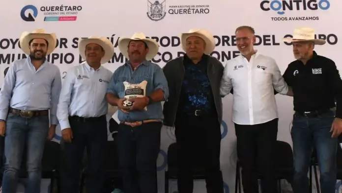 Con el propósito de mitigar los efectos de la sequía que afectan a las y los trabajadores del campo amealcense y sus familias, el titular de la Secretaría de Desarrollo Agropecuario, Rosendo Anaya, encabezó la entrega de mil 13 toneladas de maíz para consumo humano, a cinco mil 139 beneficiarios, lo anterior, en el marco del Programa Estatal Emergente para Productores Agropecuarios Afectados por Sequía.