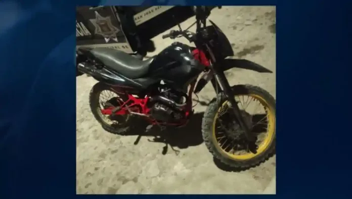 La motocicleta, de color negro con rojo y repintada, fue encontrada estacionada sin placas de circulación a un costado del panteón de la comunidad.