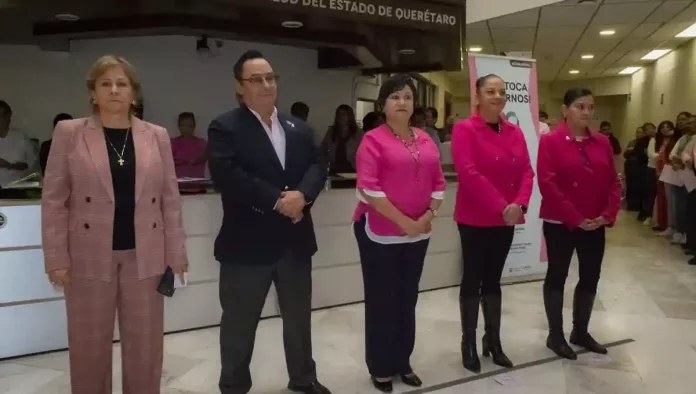 La titular de la Secretaría de Salud (SESA) del estado de Querétaro, María Martina Pérez Rendón, encabezó la ceremonia con motivo del Día Internacional de la Lucha contra el Cáncer de Mama, que se conmemora el 19 de octubre, en las oficinas administrativas.