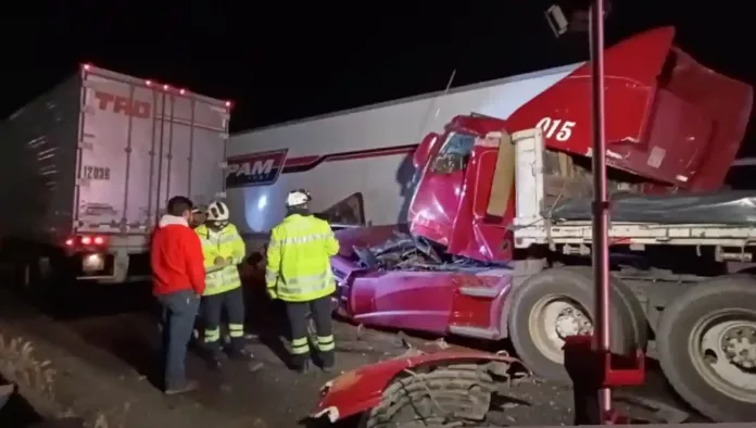 Brutal choque de tráilers dejo cuantiosas perdidas materiales, esto luego de un tractocamión se impactara contra la parte trasera de una caja de otra unidad, afectando a un tercero; el hecho se registro en la carretera federal México – Querétaro, a la altura del kilómetro 152.