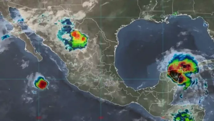 Sus bandas nubosas ocasionan lluvias torrenciales en Campeche, Quintana Roo y Yucatán.