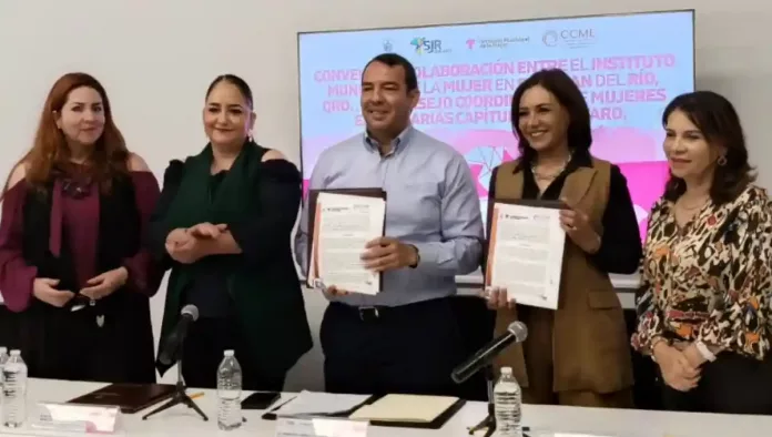 Con el objetivo de mejorar la economía de las mujeres y fomentar su crecimiento en diversas actividades financieras relacionadas con la innovación, autoempleo y emprendimiento, se llevó a cabo la firma de convenio entre el Gobierno Municipal de San Juan del Río, encabezado por Roberto Cabrera Valencia, a través del Instituto Municipal de la Mujer (IMM), dirigido por María Guadalupe Gómez Rodríguez y el Consejo Coordinador de Mujeres Empresarias Capítulo Queretaro.