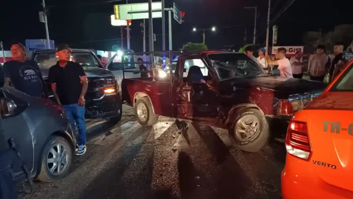 Se trató de dos camionetas, un vehículo particular y un taxista las que se vieron afectadas tras el impacto, dos personas que viajaban a bordo de una de las camionetas quedaron atoradas en su interior.