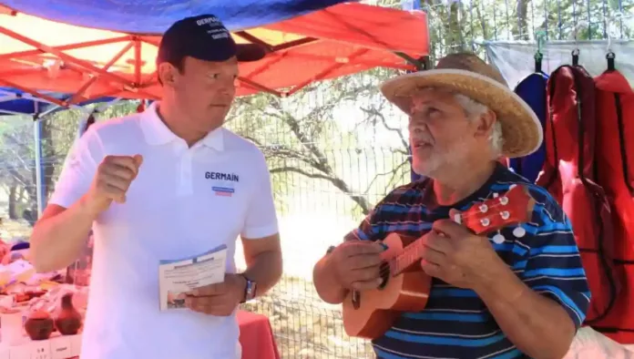 “Buenas tardes, soy Germaín Garfias, le vengo a presentar mi propuesta de campaña.” Pasaba en cada uno de los puestos del tianguis y entre la sombra de las lonas que cubrían los pasillos, se detenía a escuchar algunas de las necesidades e intenciones de los ciudadanos.