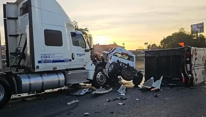 Los vehículos involucrados fueron un tráiler y dos camionetas, una de tres y media toneladas y una SUV, los cuales quedaron en el carril de media al impactarse, quedando la camioneta volcada hacia un extremo y otra más hacia la cuneta.