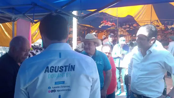 El candidato por la coalición Fuerza y Corazón de México, del partido Acción Nacional, Revolucionario Institucional, Democrático, Agustín Dorantes acompañado del ex-gobernador del estado de Querétaro, Francisco Domínguez, llevó a cabo un recorrido por el tianguis Las Garzas en el municipio de San Juan del Río.