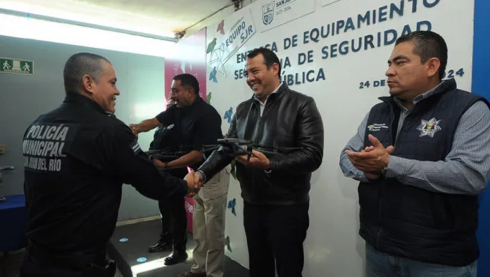 - Con el objetivo de Defender y Cuidar a las familias sanjuanenses, el presidente municipal de San Juan del Río, Roberto Cabrera Valencia, en equipo con el secretario de Seguridad Pública Municipal, Ángel Rangel Nieves, realizó la entrega de 60 uniformes y dos drones al personal del Centro de Control, Comando, Comunicaciones y Cómputo (C4), que representó una inversión de cerca de 200 mil pesos.