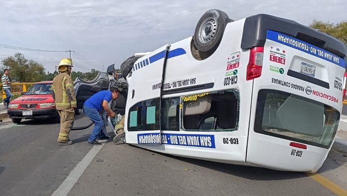 Volcadura de transporte público se registró esta tarde en la carretera San Juan del Río- Xilitla, a la altura del kilómetro 14 correspondiente a la comunidad de San Nicolas en el municipio de Tequisquiapan, dejando alrededor de siete personas lesionadas.