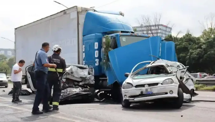 Un camión tipo tortón aparentemente sin frenos ocasionó una fatal carambola, llevándose a su paso al menos 12 vehículos, resultando una persona fallecida y 14 más con lesiones