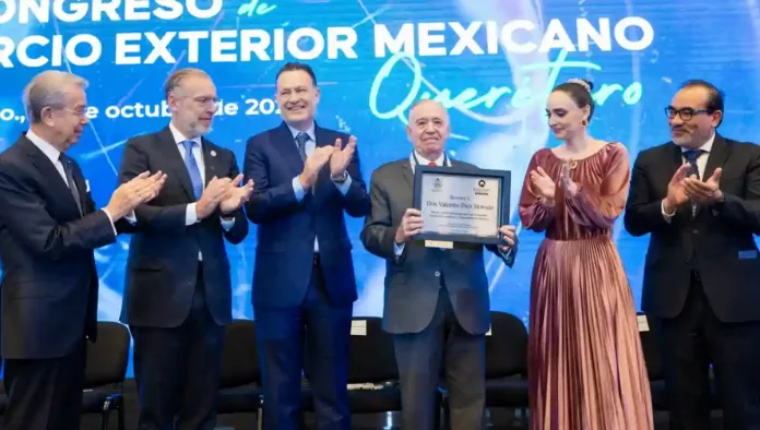 El presidente honorario del COMCE, Valentín Díez Morodo, quien recibió un reconocimiento por su trayectoria y esfuerzos en beneficio del país, compartió que este año el Congreso dedica un espacio muy especial al encuentro de negocios Hecho en México con Calidad, para reconocer la contribución e impulsar nuevas oportunidades de desarrollo internacional.