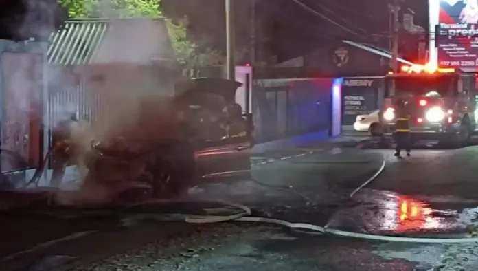 Tras una explosión, se registró el incendio de una camioneta tipo SUV, afortunadamente no hubo personas lesionadas, esto en la calle Manuel Gómez Morín a un costado de la Universidad Autónoma de Querétaro campus San Juan del Río
