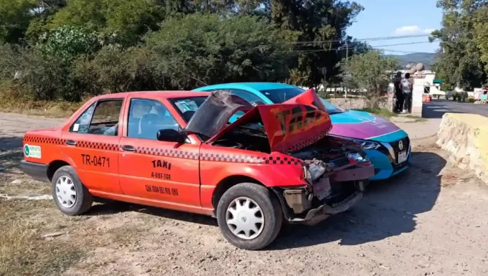 Se informó, que el conductor del taxi conducía alcoholizado por lo que al trata de rebazar en el puente vehicular de la presa choco contra el camión de transporte de personal.