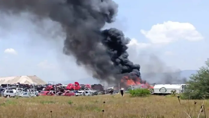 Un Fuerte incendio se registró al interior de un deshuesadero en la comunidad de Loma Linda, en el municipio de San Juan del Río, lo que alertó a los servicios de emergencia.