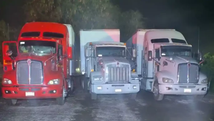 Se localizaron tres tractocamiones con cajas secas y mangueras aparentemente enlazadas a una toma clandestina de hidrocarburo.