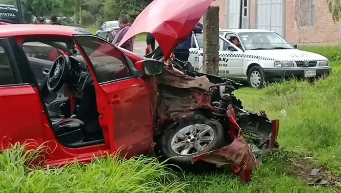 De acuerdo a testigos la conductora del vehículo trato de rebasar cuando se encontró con un camión de transporte pesado, éste a su vez impacta al carro de color rojo y lo arrastra varios metros hasta quedar destrozado.