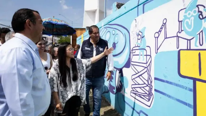 Por su parte, la artista Alondra Corona, conocida como Ruido, autora del mural, explicó que la obra se divide en tres secciones principales, que incluye una intervención colectiva con la palabra Cuídala, resultado de la participación comunitaria, además de murales laterales que simbolizan el uso cotidiano del agua, el trabajo en equipo que hace posible su suministro y el reconocimiento al esfuerzo diario de los trabajadores de JAPAM.