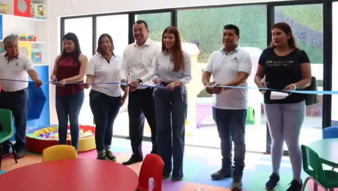 La presidenta del Sistema Municipal para el Desarrollo Integral de la Familia de San Juan del Río (DIF), Gina Sánchez Barrios, y el alcalde sanjuanense, Roberto Cabrera Valencia, entregaron la ludoteca del Mercado Juárez, espacio que permitirá a las y los hijos de locatarios y locatarias tener una estancia digna y segura en este centro de abasto mientras sus madres y padres realizan sus actividades.