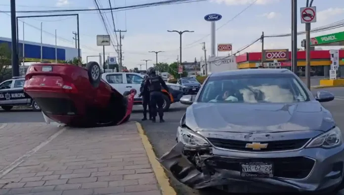 Fuerte accidente se registró en Boulevard Hidalgo, en el municipio de San Juan del Río, dónde luego de un choque entre dos vehículos uno resultó volcado, dejando varios lesionados entre ellos dos menores de edad y dos femeninas.