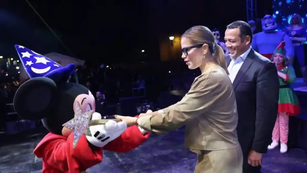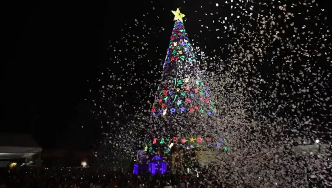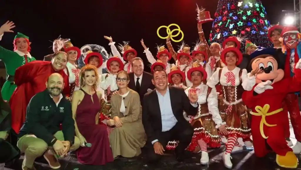 Como primera atracción, las autoridades estatales y municipales presenciaron un espectáculo a cargo de personajes de películas infantiles, que dio paso al encendido del Pino Monumental de 25 metros de altura que cuenta una estrella tridimensional de 4.5 metros, con estructura de acero cubierta de luces y alrededor se montó una gran villa navideña.