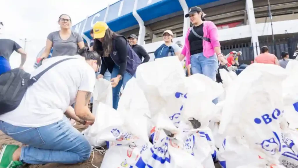 Posteriormente acudió al Estadio Corregidora, donde el mandatario estatal atestiguó las labores realizadas por brigadistas voluntarios y de gobierno para el llenado y traslado de costaleras.