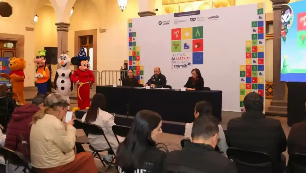 Con el objetivo de fortalecer los valores y compartir un rato de esparcimiento entre las familias queretanas, el director general del Sistema Estatal DIF, Óscar Gómez Niembro, encabezó la presentación del Festival Alegría Contigo 2025, que recorrerá diez municipios del estado con pistas de hielo y desfiles con carros alegóricos alusivos a las fiestas decembrinas.