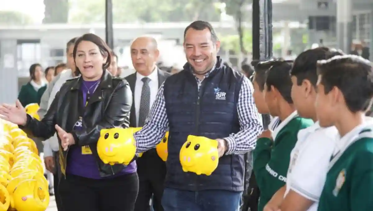 El presidente municipal de San Juan del Río, Roberto Cabrera Valencia, asistió a la entrega directa de los botes de la campaña 2025 de Fundación Teletón en la escuela secundaria Antonio Caso, ubicada en el Centro Histórico de la demarcación, evento en el que estuvieron presentes personal del plantel educativo y de la Fundación.