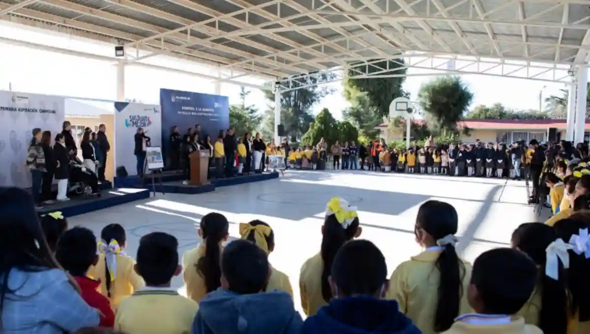 La secretaria de Obras Públicas y Desarrollo Urbano, Edith Álvarez Flores, detalló que, para la construcción de las aulas, se llevaron a cabo labores de cimentación, colocación de cadenas, castillos y trabes, trabajos de albañilería, acabados e instalación de mobiliario y equipamiento; asimismo, indicó, se construyeron los andadores.