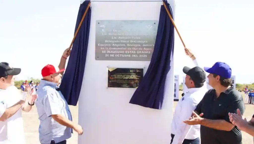 El presidente municipal de San Juan del Río, Roberto Cabrera Valencia, encabezó la ceremonia de inauguración de las gradas en el campo de beisbol de la comunidad Ojo de Agua, donde también quedó formalmente iniciada la Liga de Beisbol 2025-2026, a quienes convocó a consolidarse como un ejemplo en la región.