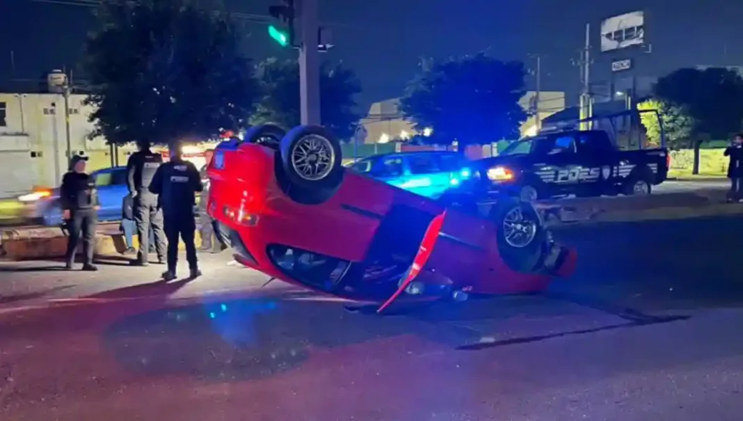 De acuerdo a la información proporcionada en el lugar, el conductor del vehículo tipo sedan color negro perdió el control de su unidad, por lo que golpeó con el camellón y volcó.