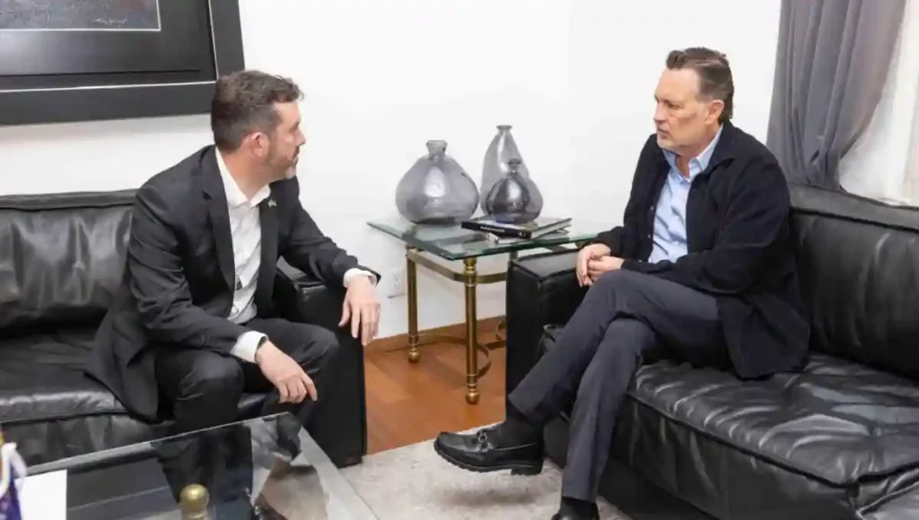 El titular del Poder Ejecutivo estatal, Mauricio Kuri González, se reunió en la Casa de la Representación en la Ciudad de México con el presidente de la American Society of México, Larry Rubin.